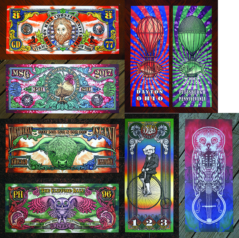 1 Norther Island "Shaggy Ox" 1 Dayton & Pittsburgh "Floating Phish" 1 Baker's Dozen MSG "Rooster Bill" 1 Clifford Ball "Beacon Owl" 1 Dicks Unicycle PRE RRELEASE! 1 Mandowlin Art Print